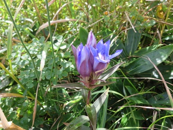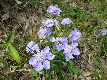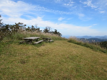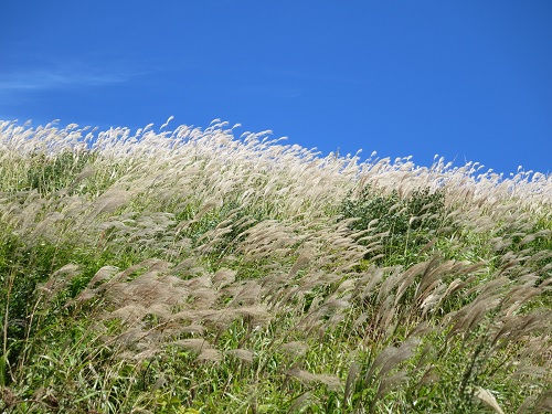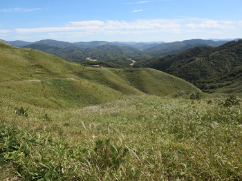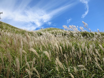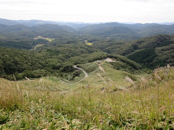 北広島町の雲月山へ、ススキ見物と洒落てみた。広島県と島根県の県境に位置する。「うづきやま」「うんげつさん」「うづつきやま」呼び方も様々だ。雲月峠近くの登山口から反時計回りで。ススキは勿論、オタカラコウ、ウメバチソウ、マツムシソウ・・・の〜んびりと風情を楽しみながら。山頂に着いて吃驚!!!イノシシの仕業か・・・芝が見事に耕さ