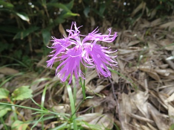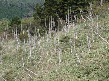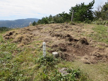11:21 雲月山山頂。イノシシの仕業か。う〜ん!いい仕事してるなあ。