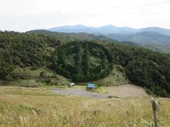 10:30 岩倉山のベンチから見る旧芸北町の町章。